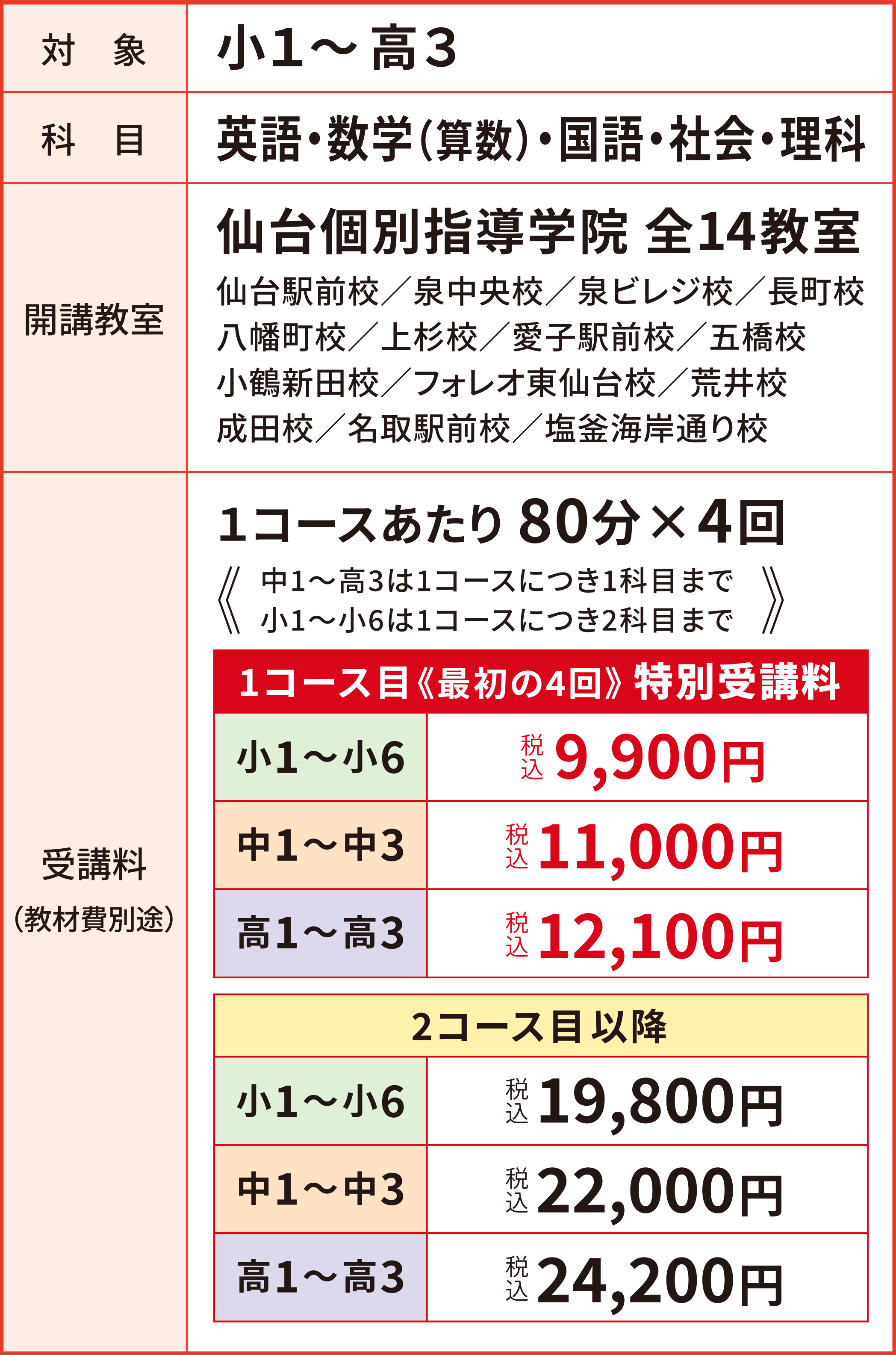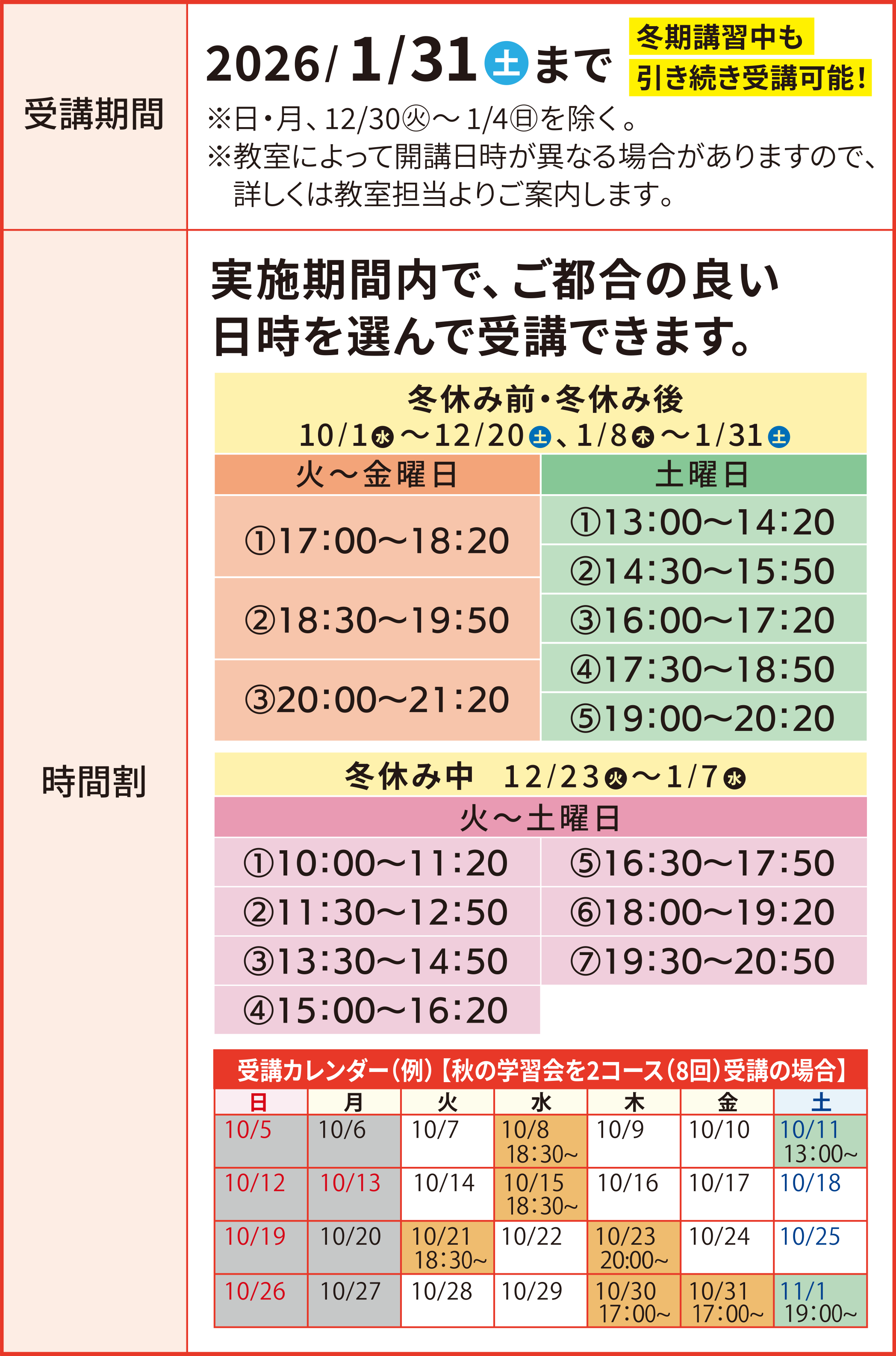 ※お申込みを確認後、教室担当者よりご連絡いたします。