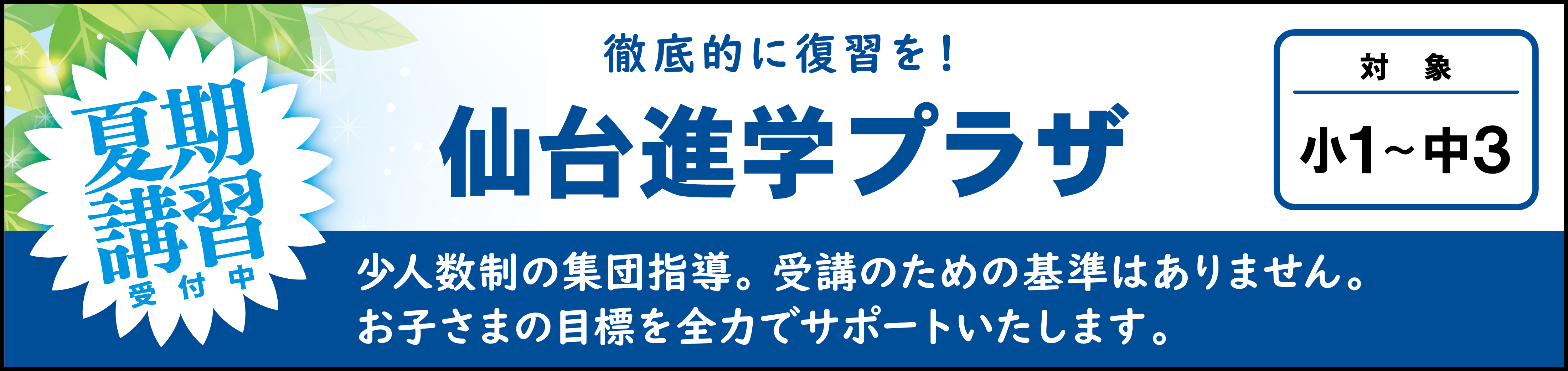 仙台個別指導学院 入会金 [通常22,000円(税込)]半額 <同時入会で>夏期講習の1コース目授業料 半額 ※1コース目に適用します。2コース目以降は料金が異なります。