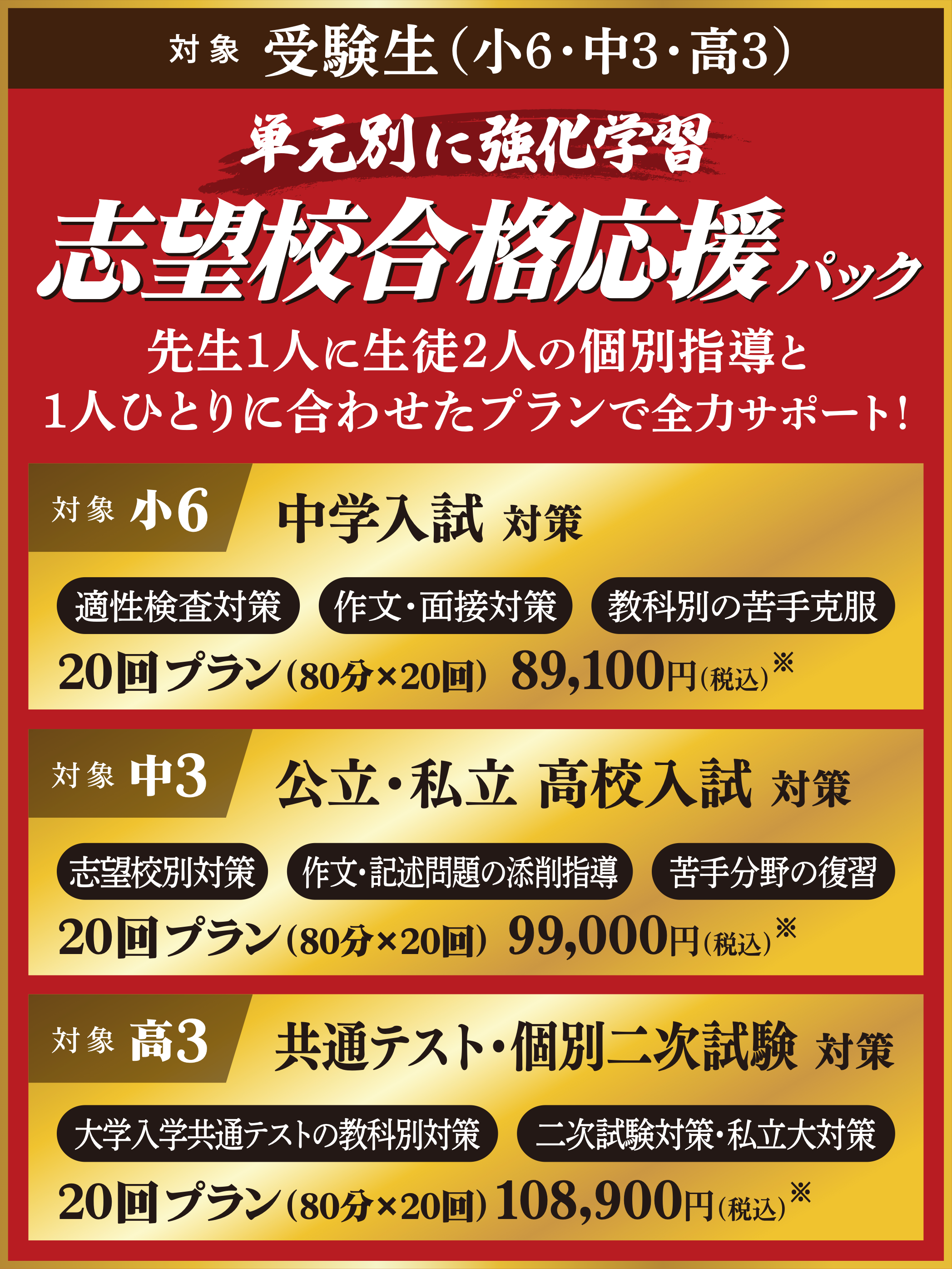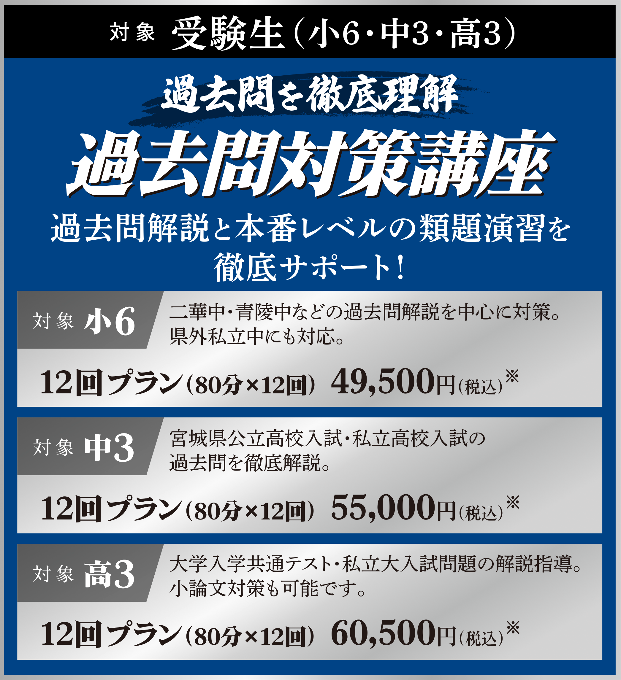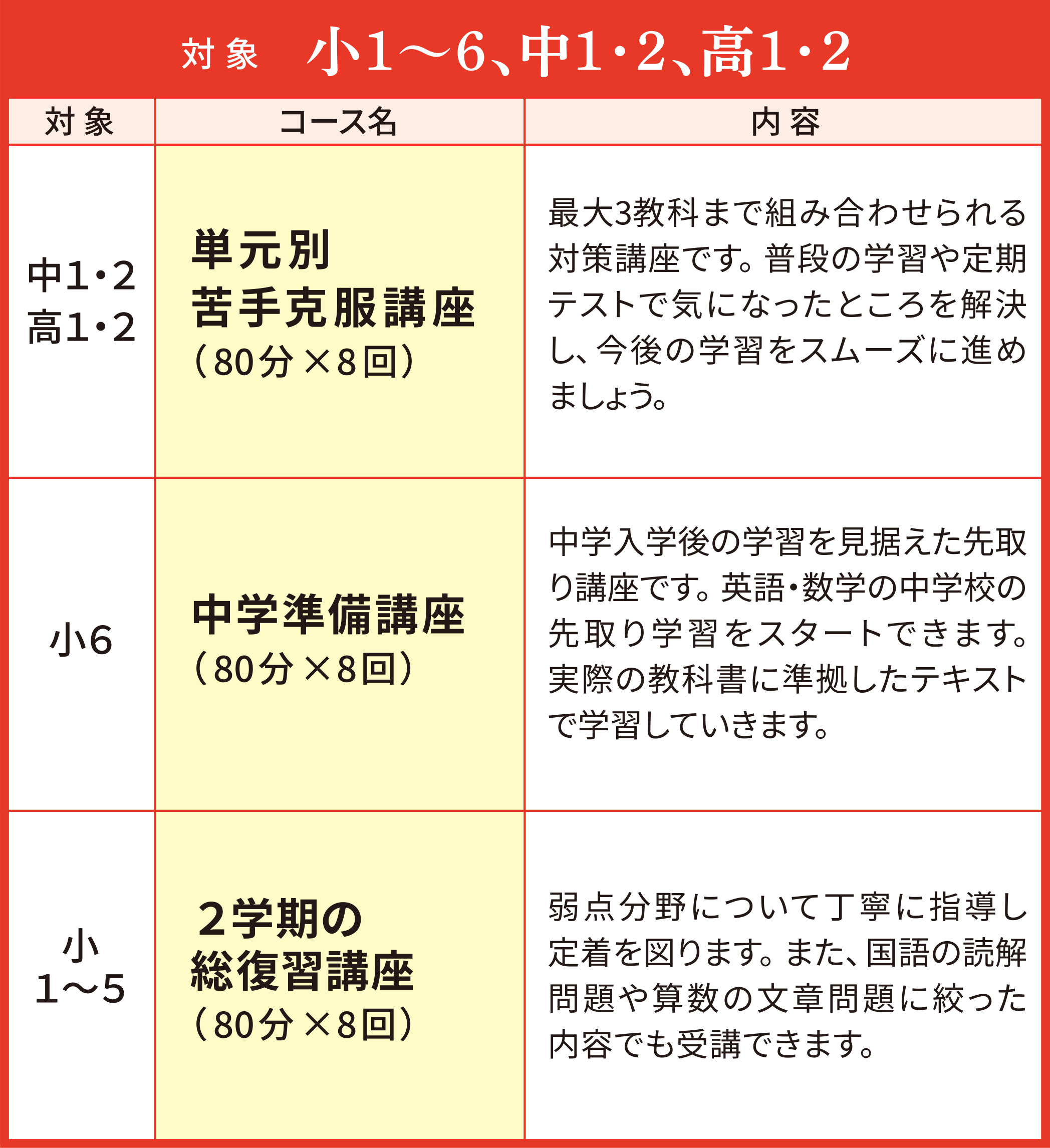 ※校舎によって開講日時が異なる場合もございますので、詳しくはご希望校舎の担当者よりご案内いたします。